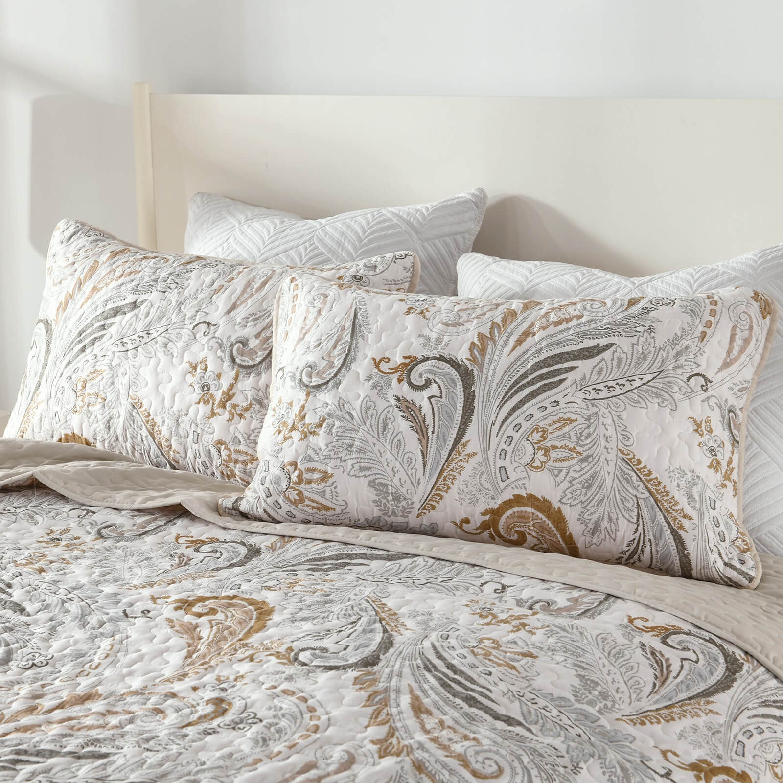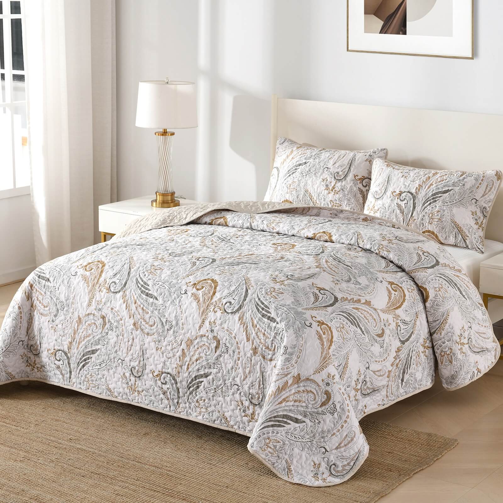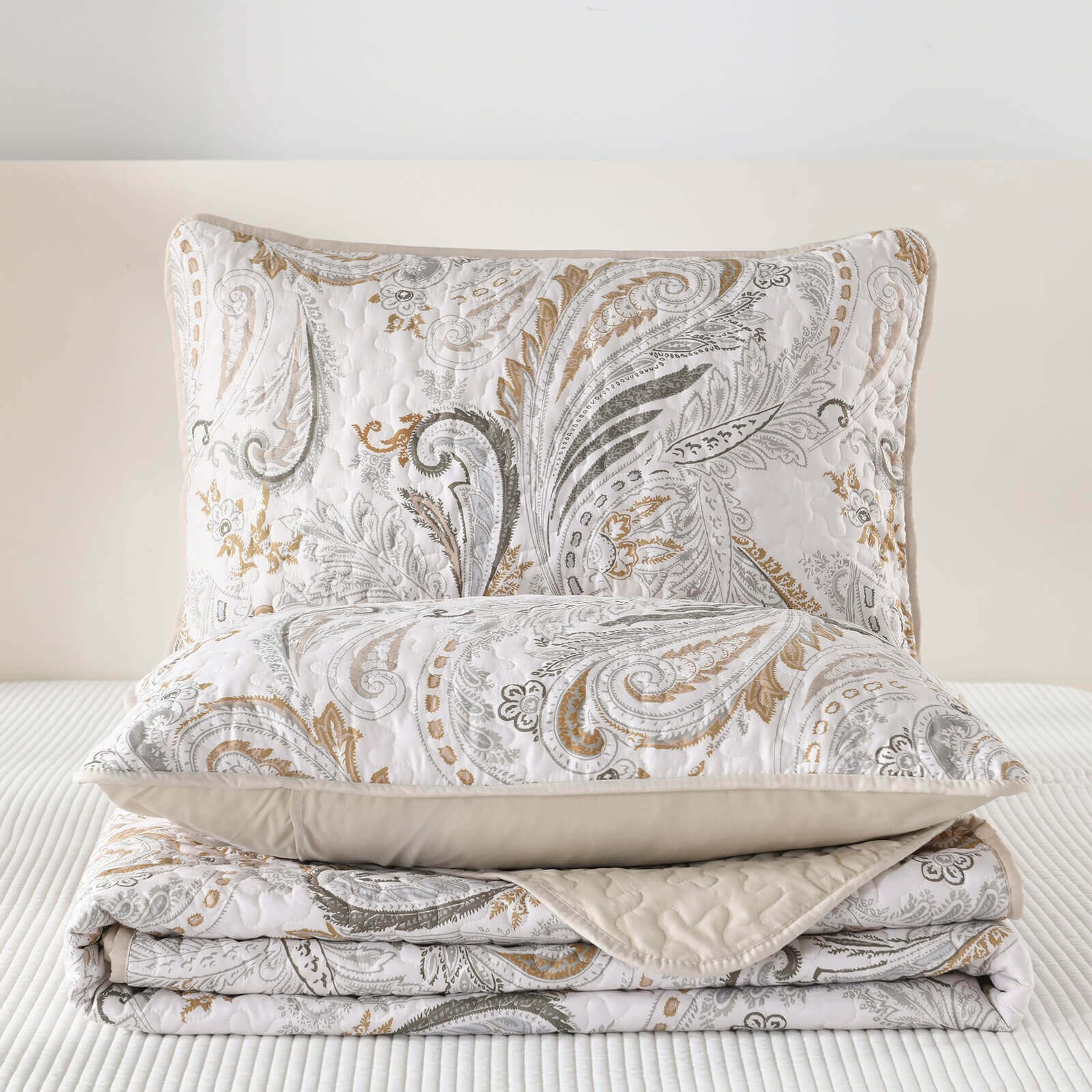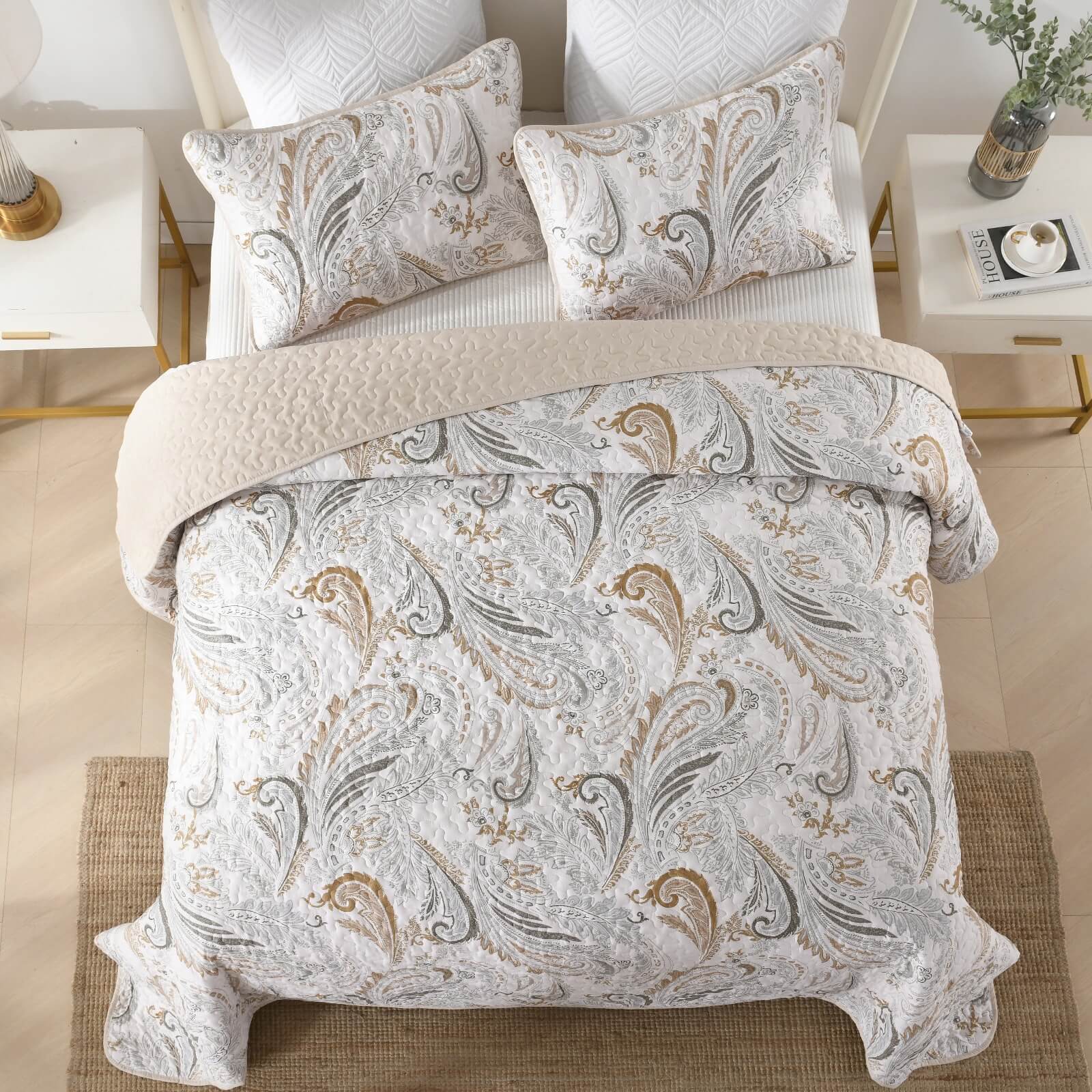 Paisley Elegance Beige Quilted Bedspread Set - Soft & Breathable Coverlet Set (3Pcs)