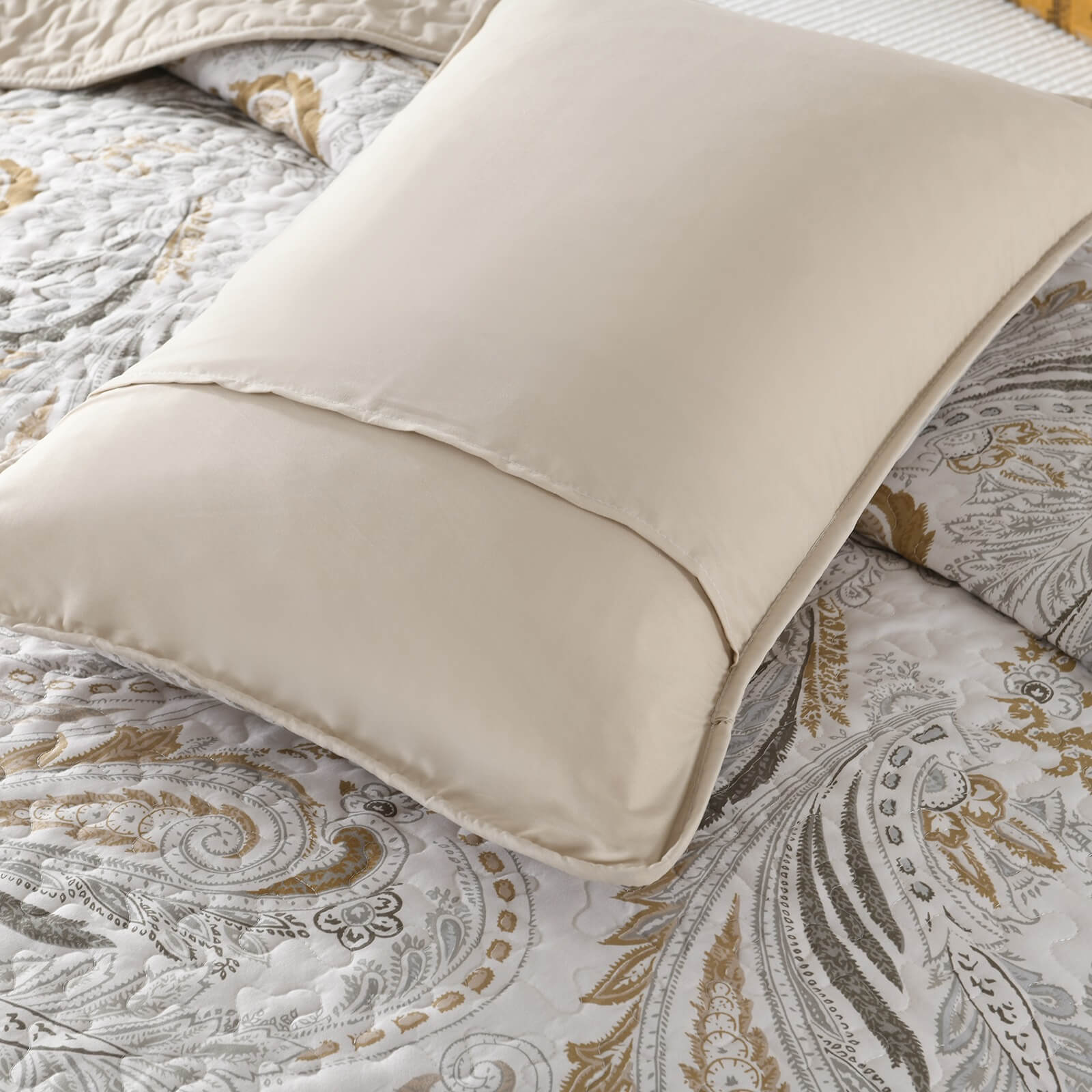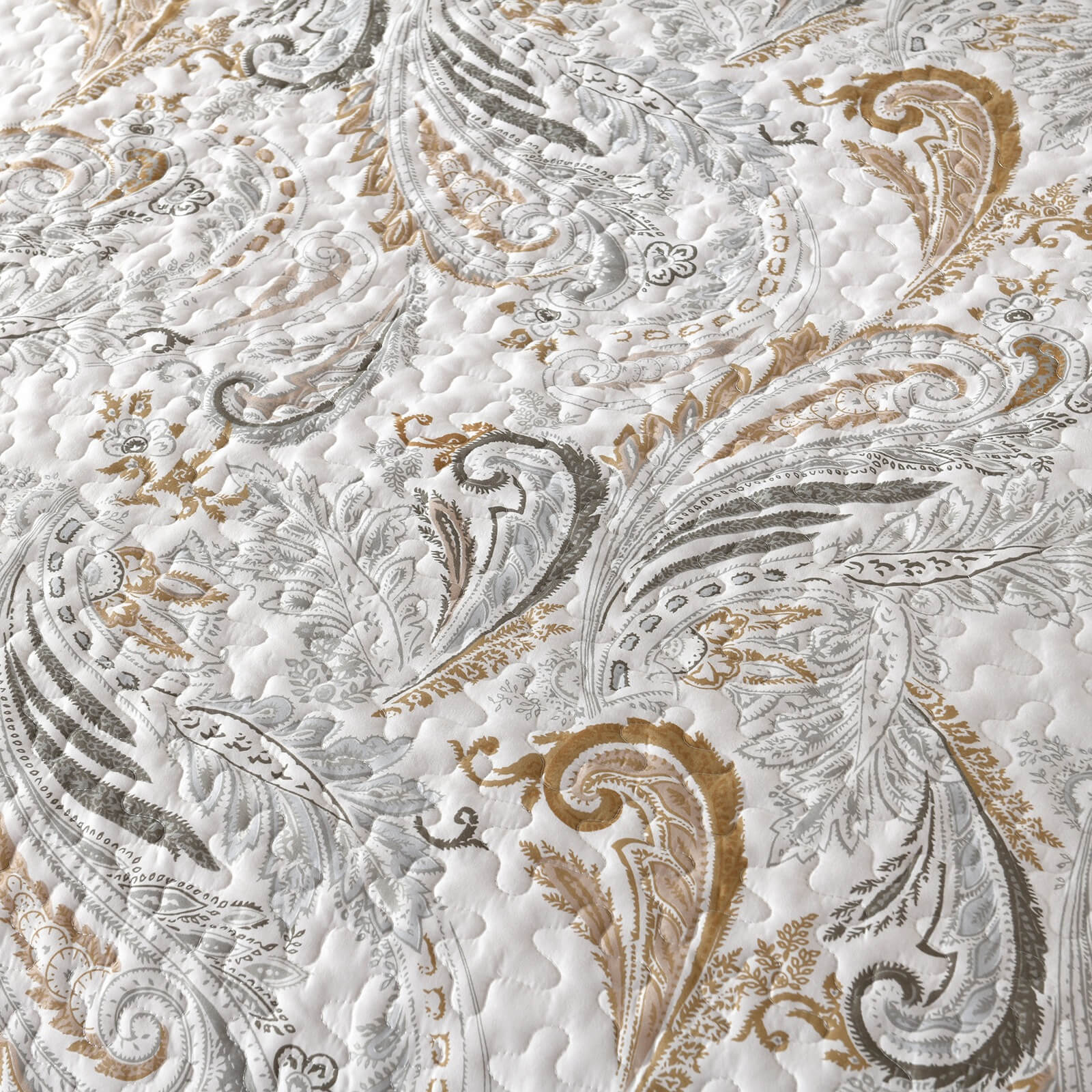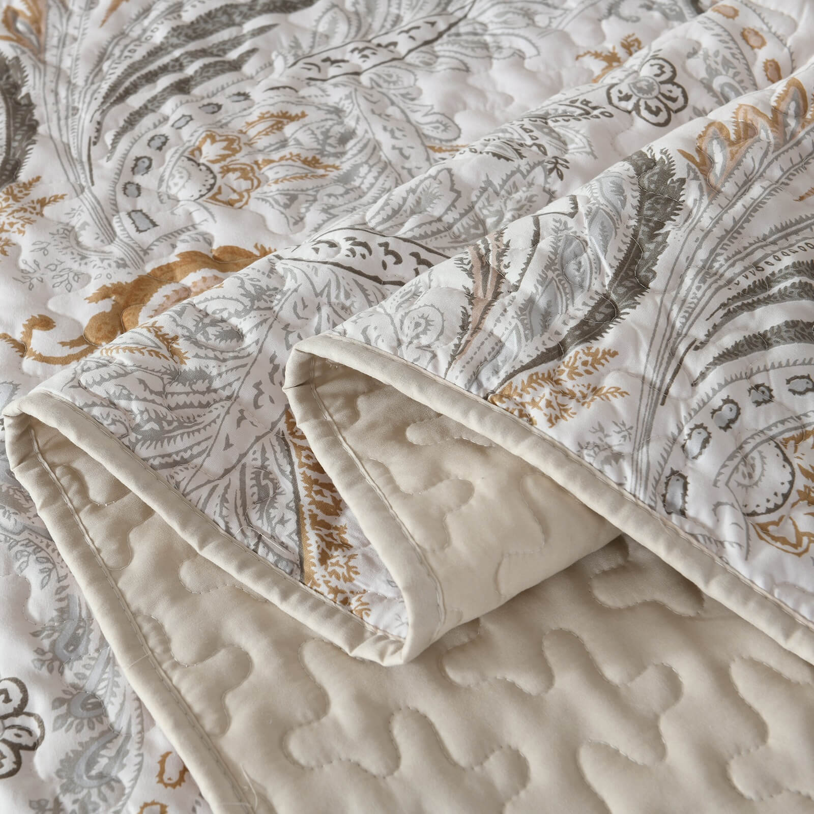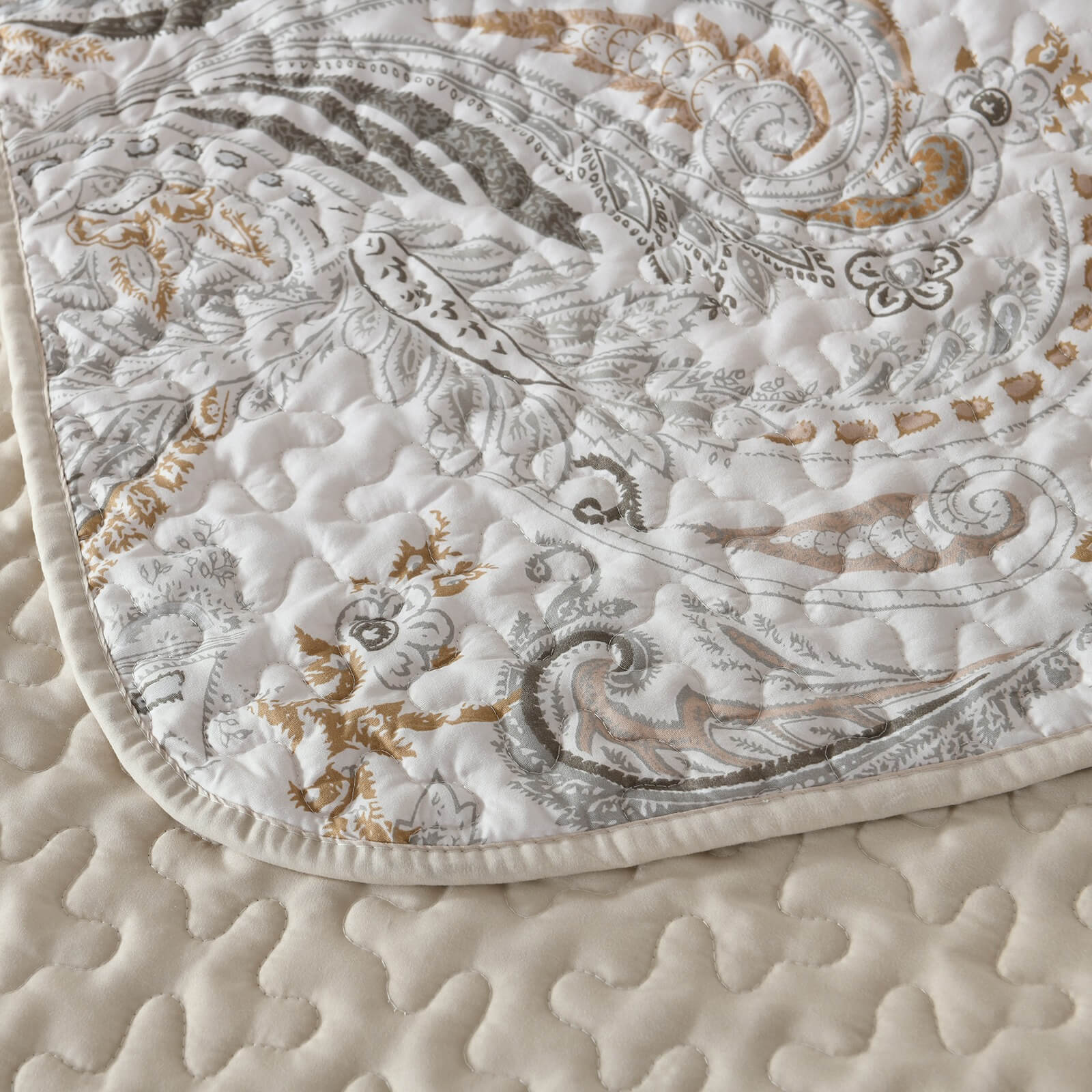 Paisley Elegance Beige Quilted Bedspread Set - Soft & Breathable Coverlet Set (3Pcs)