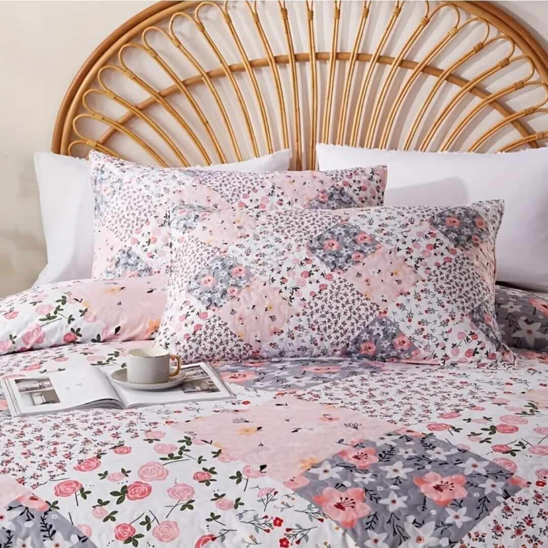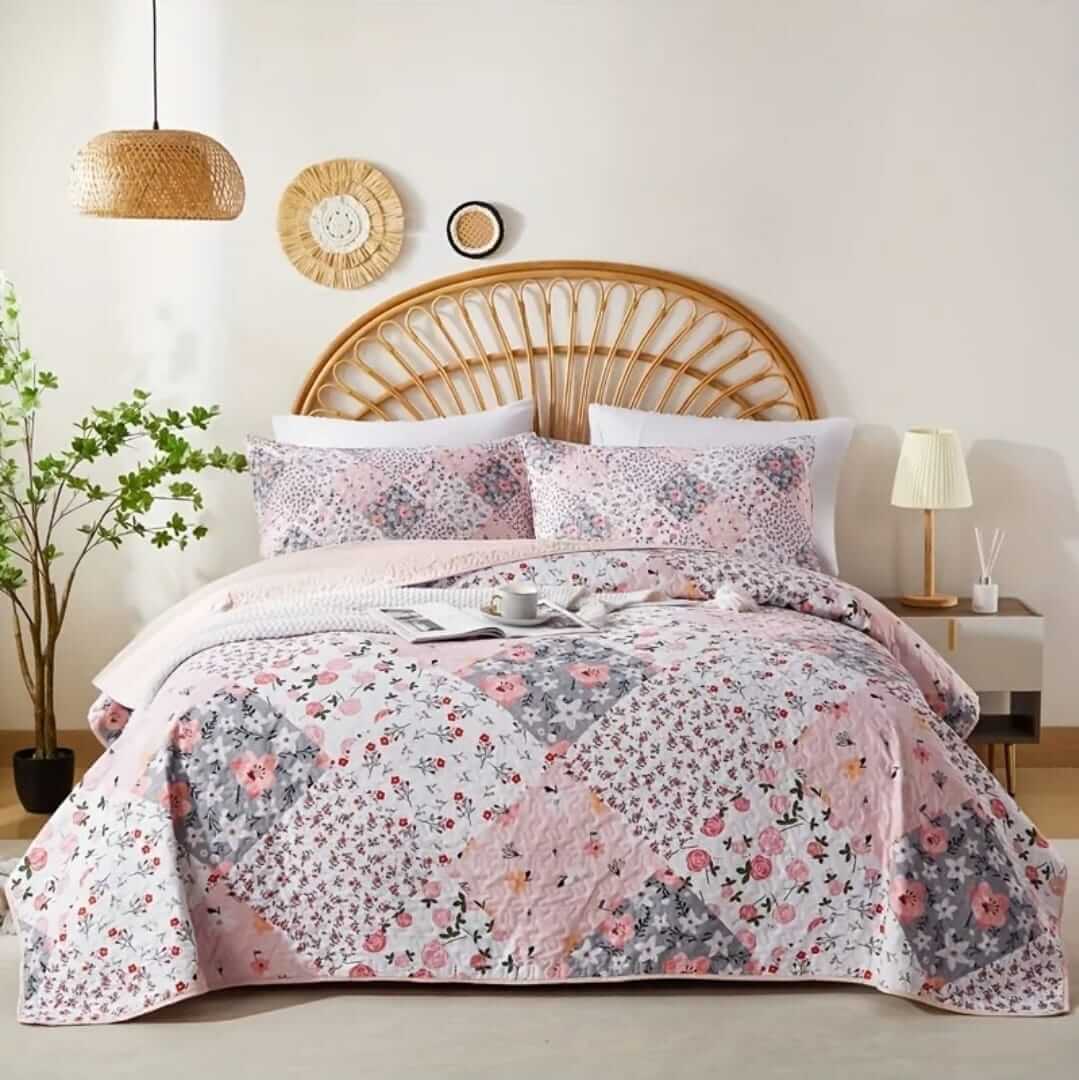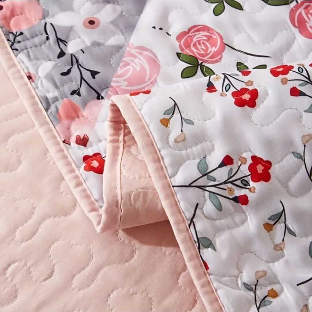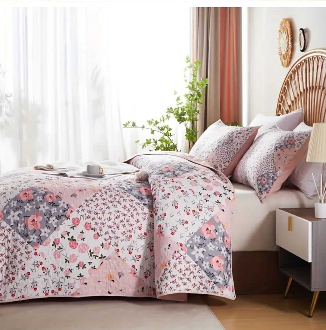 Baby Pink Floral Quilted Bedspread Coverlet Sets (3Pcs)