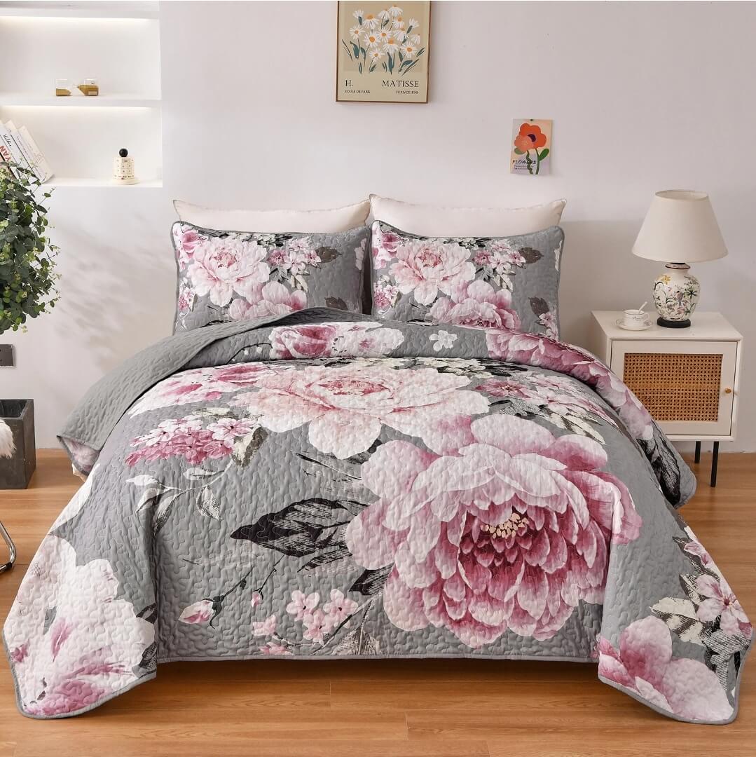 Thank you for taking the time to leave us a positive review! We are delighted to hear that you are happy with the quality of our Light Blue Floral Bedspread Coverlet Sets and your overall experience with us. It's our pleasure to provide prompt and satisfactory service to our customers. Thank you for choosing us!