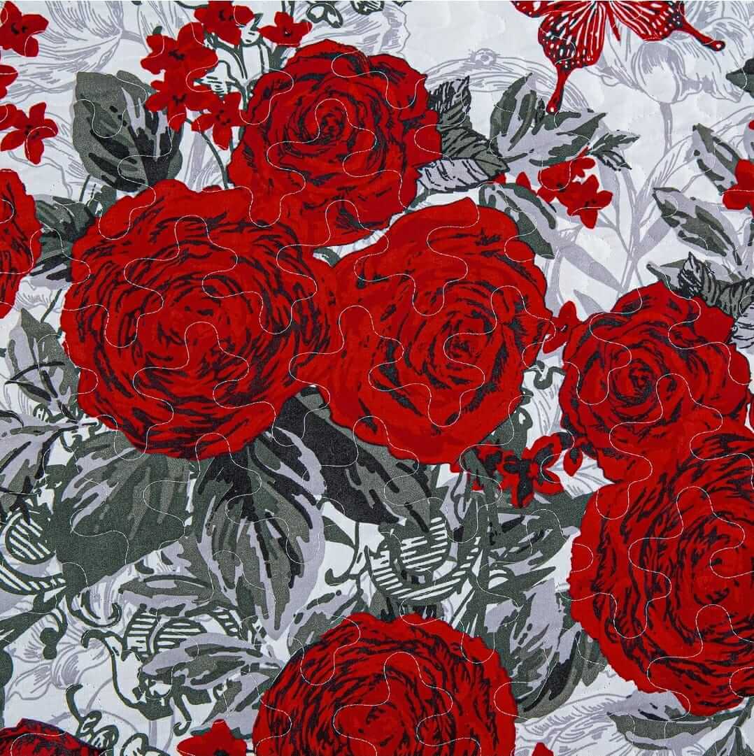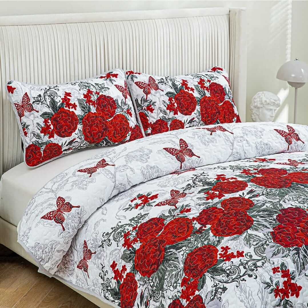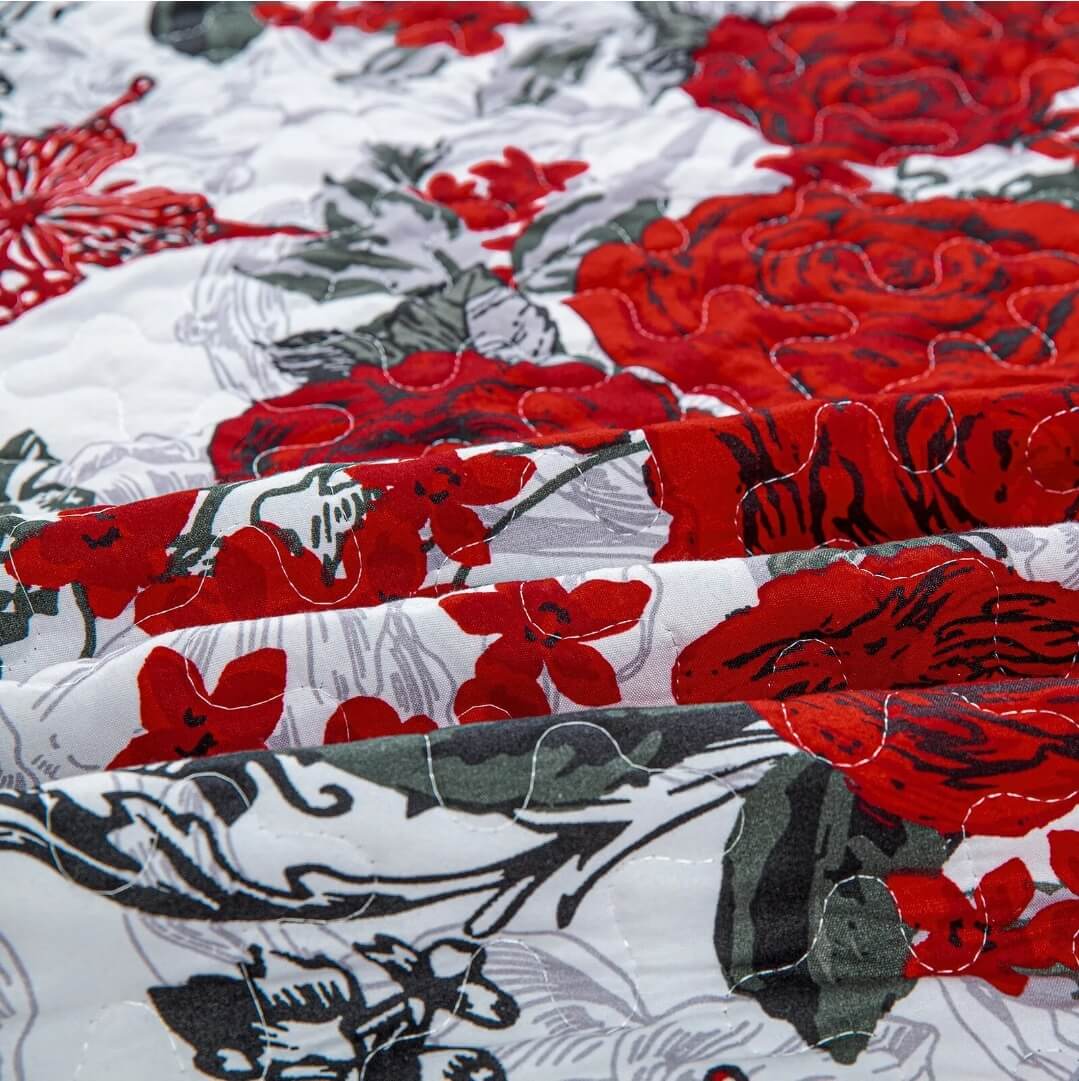 Red Roses Design Coverlet Set-Quilted Bedspread Sets (3Pcs)