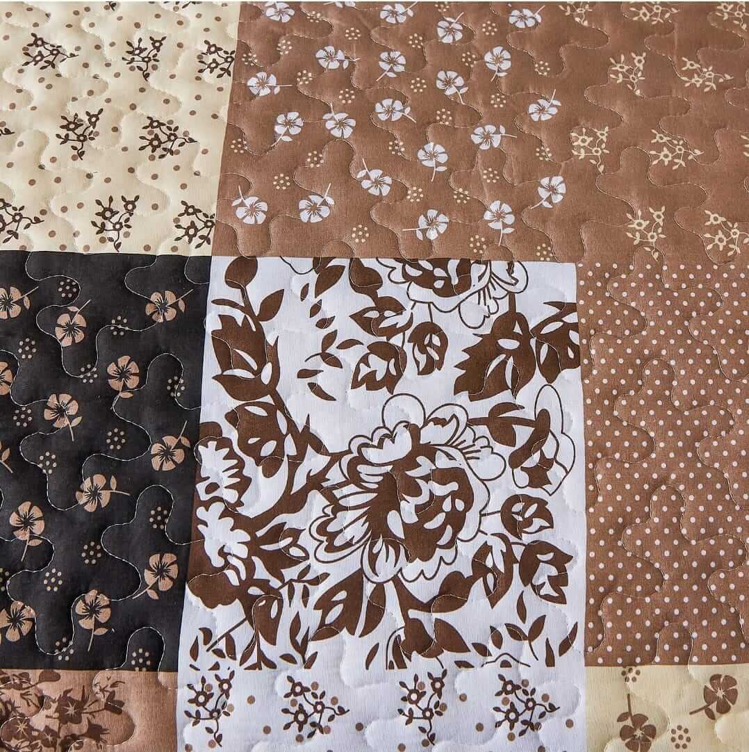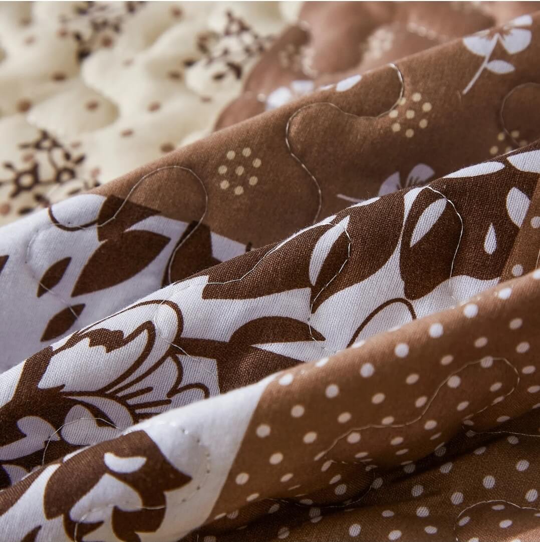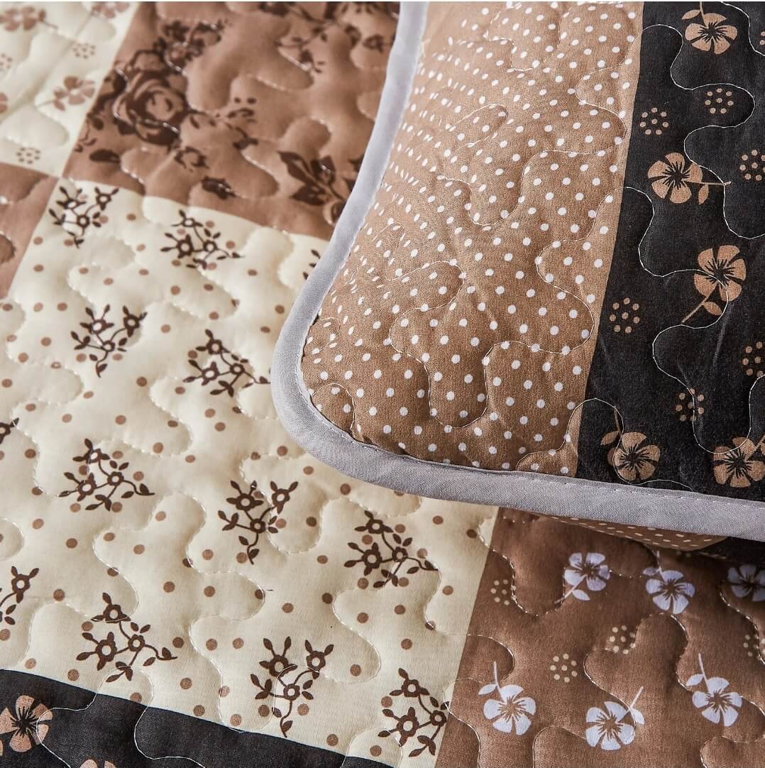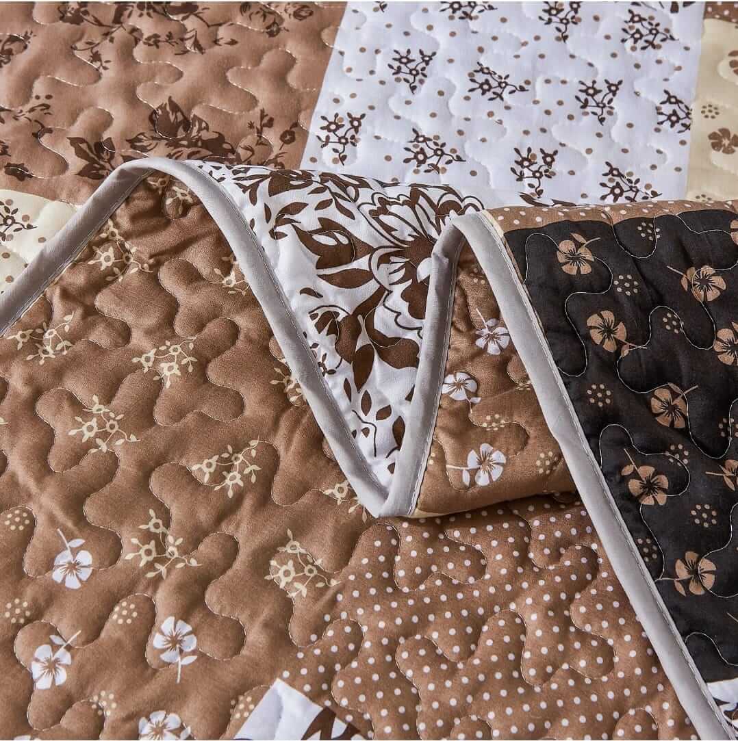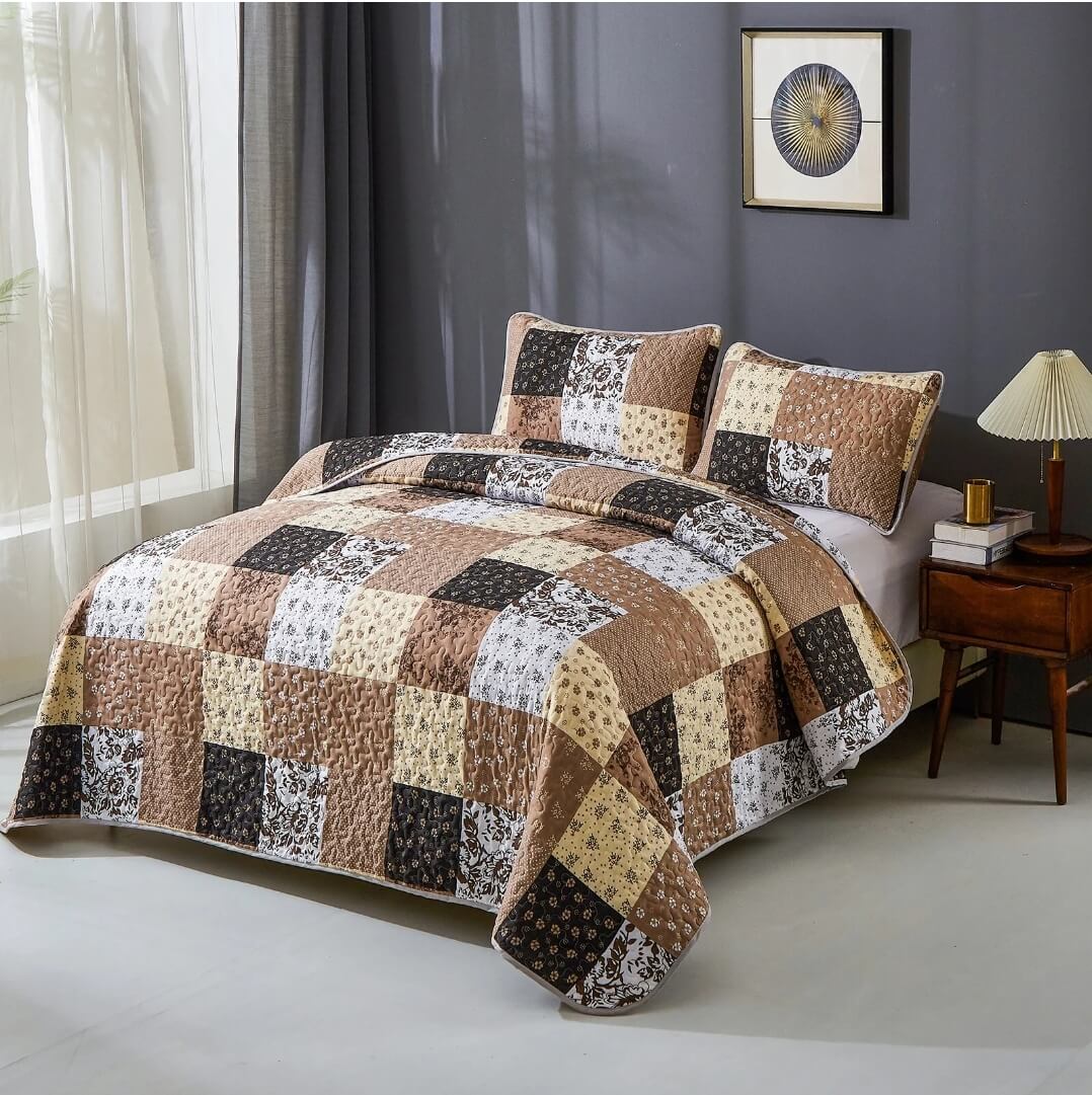 2025 Brown Patchwork Quilted Bedspread Coverlet Set (3Pcs)