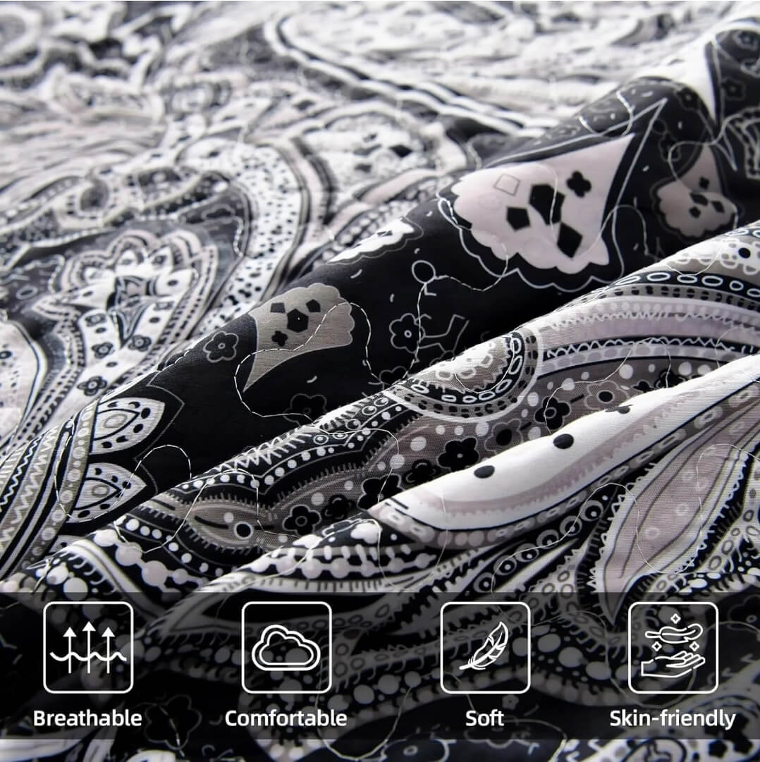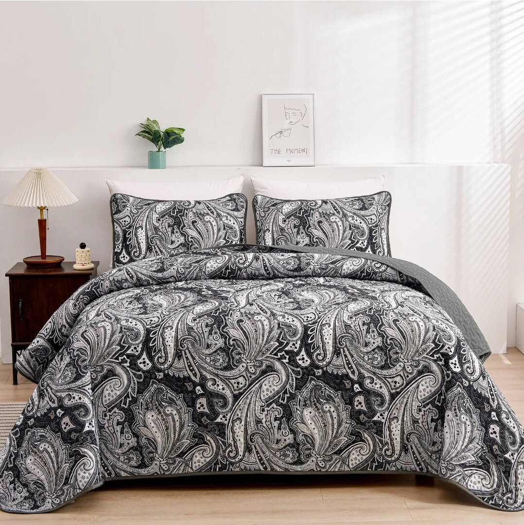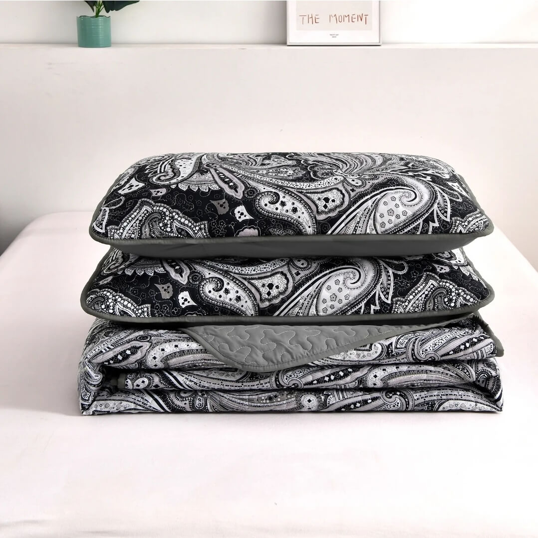 Black Paisley Coverlet Set-Quilted Bedspread Sets (3Pcs)