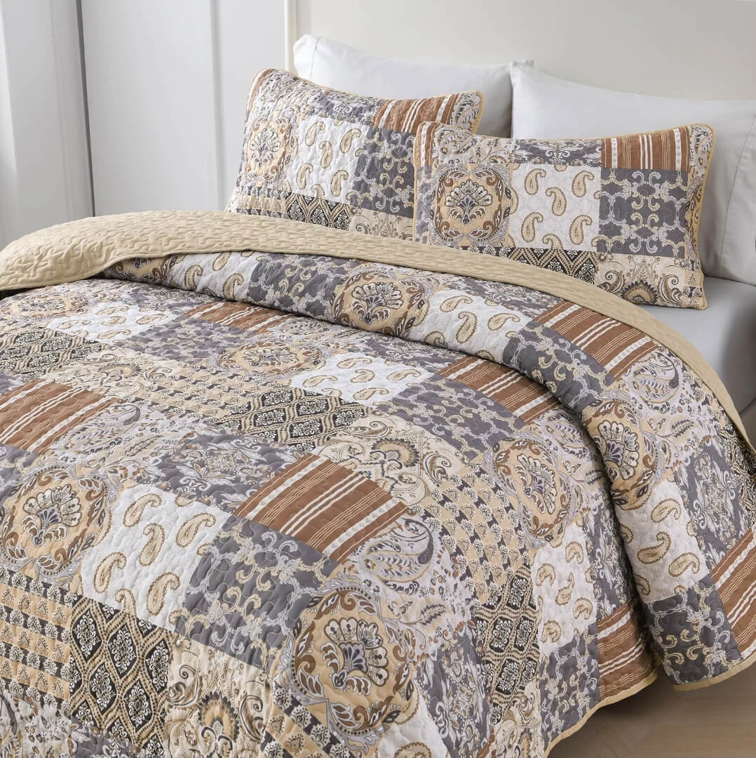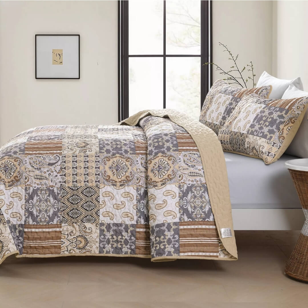2025 Beige Paisley Coverlet Set-Australian Summer Bedspread Sets (3Pcs)