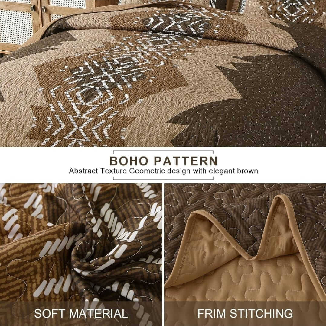 Bohemian Tribal Brown Geometric Quilted Bedspread Coverlet Set (3Pcs)
