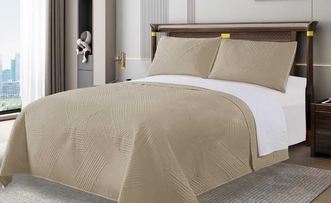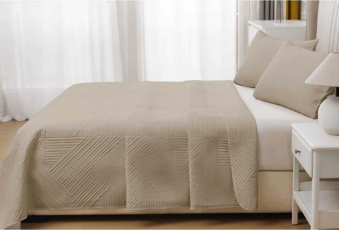 Beige Geometric Design Quilted Bedspread Coverlet Sets (3Pcs)