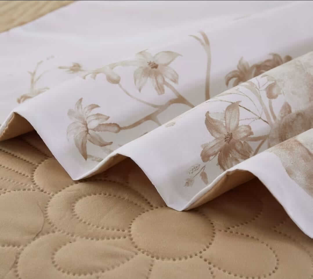 Beige Base Floral Coverlet Set-Quilted Bedspread Sets (3Pcs)