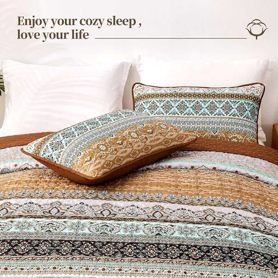 Rustic Bohemian Striped Quilted Bedspread Coverlet Set (3 Pcs)