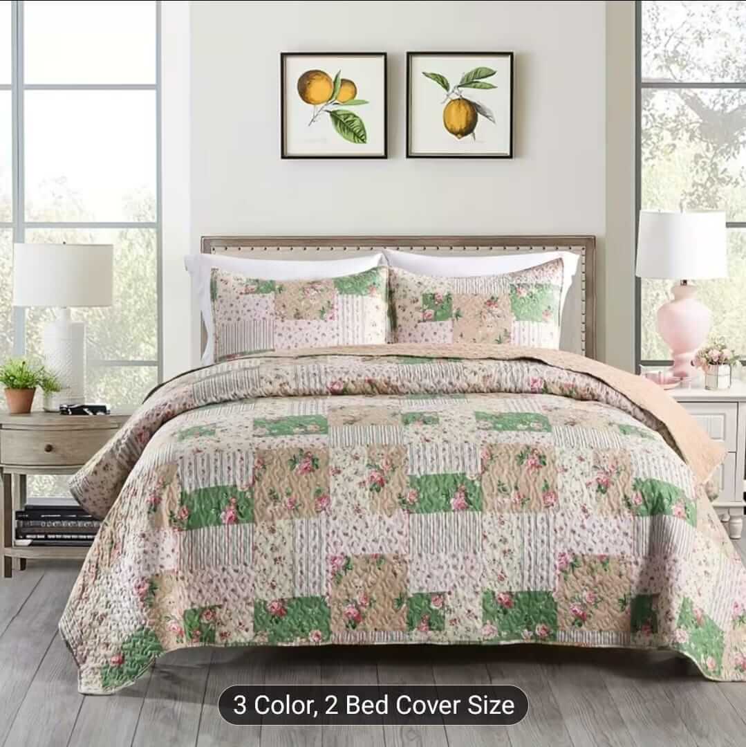 2026 Patchwork Design Peach Bedspread Coverlet Set (3Pcs)
