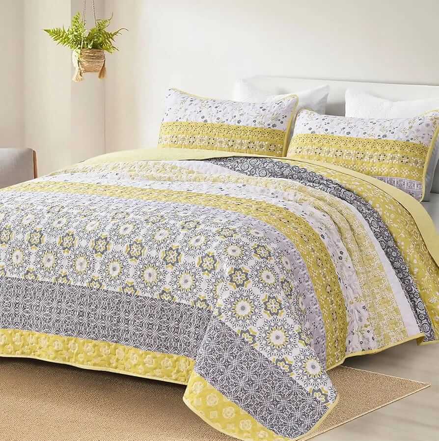Yellow Moroccan Geometric Quilted Bedspread Coverlet Set (3Pcs)