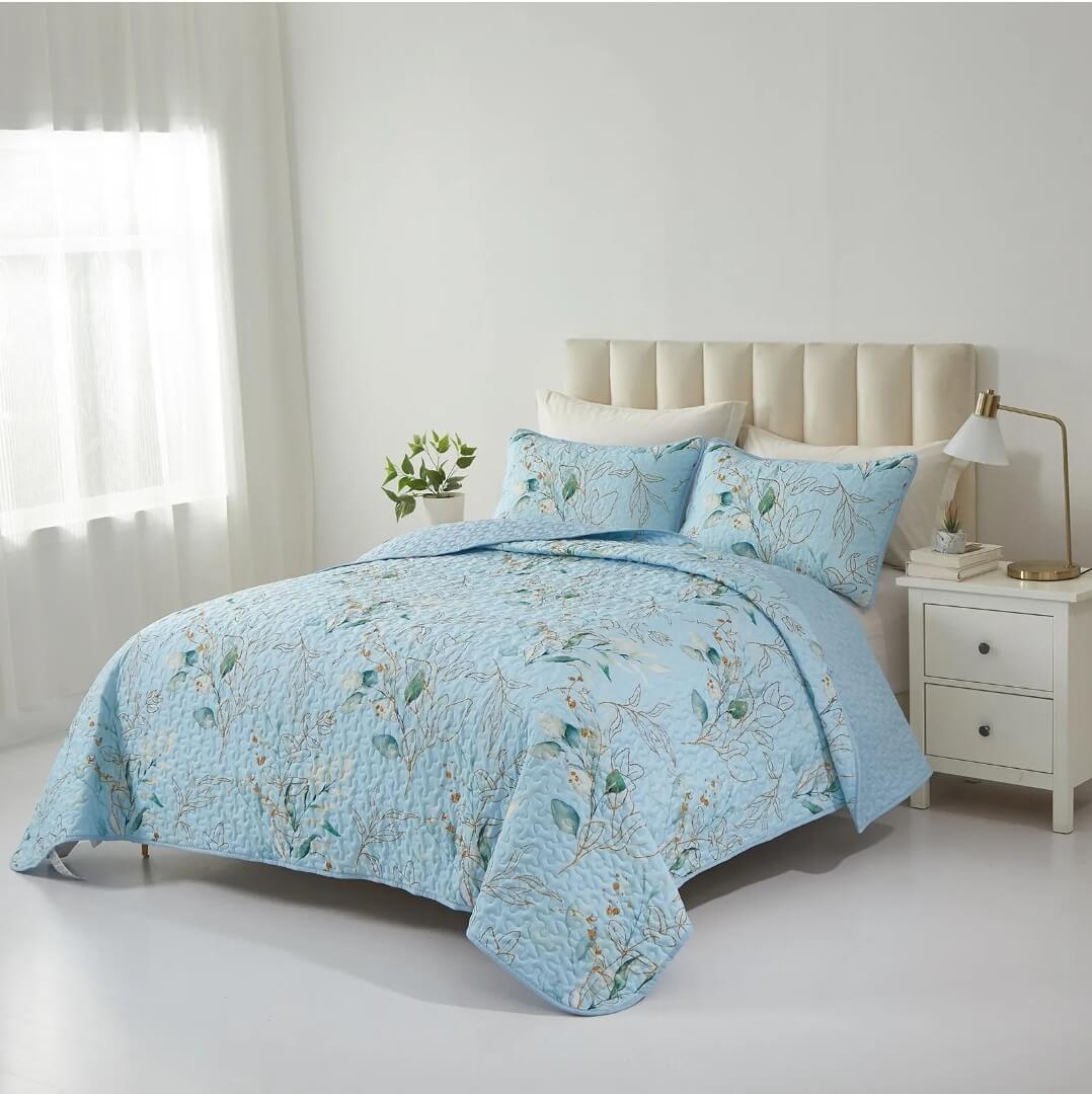 Our King and Queen size Bedspreads are made from using microfiber with polyester filling. These quilts are of hotel standard and gives luxury and superb feel & their finish make the Coverlets a favourite for those seeking a five-star indulgence. For years in the making, our Bedding sets are durable and luxurious while being incredibly soft and crisp.