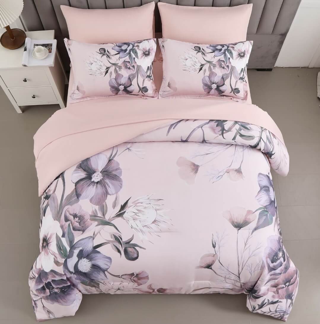 Pink Flowers Comforter Set-Quilt Set (3Pcs)