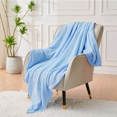 Flannel Fleece Blanket - Cuddly Plush Sofa Throw (Sky Blue)