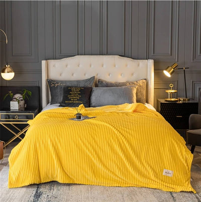 Soft Warm Flannel Blanket - Cuddly Sofa Throw (Yellow)
