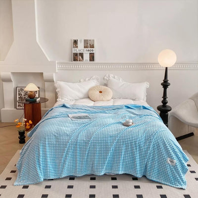 Soft Warm Flannel Blanket - Cuddly Sofa Throw (Blue)