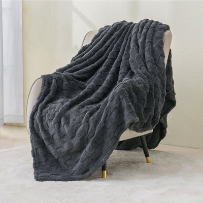 Soft Warm Fluffy Blanket - Cuddly Plush Sofa Throw (Dark Grey)