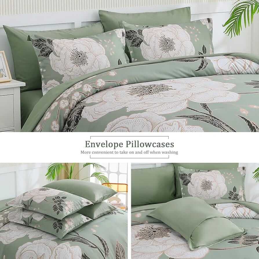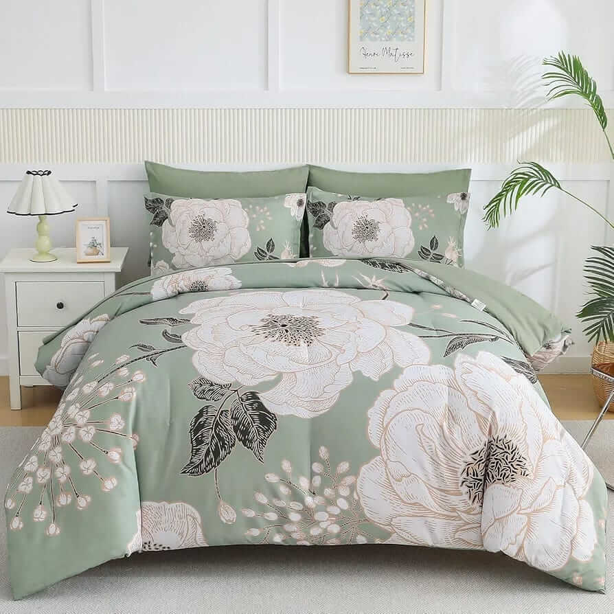 2025 Green Base Botanical Comforter Set-Quilt Set (3Pcs)