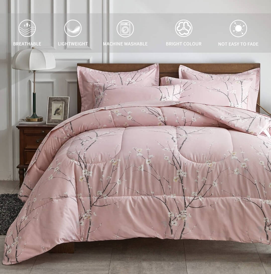 Light Pink Branched Comforter Set-Quilt Set (3Pcs)