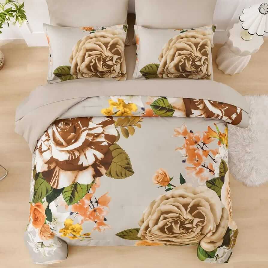 Beige Bloom Floral Comforter Set-Quilt Set (3Pcs)