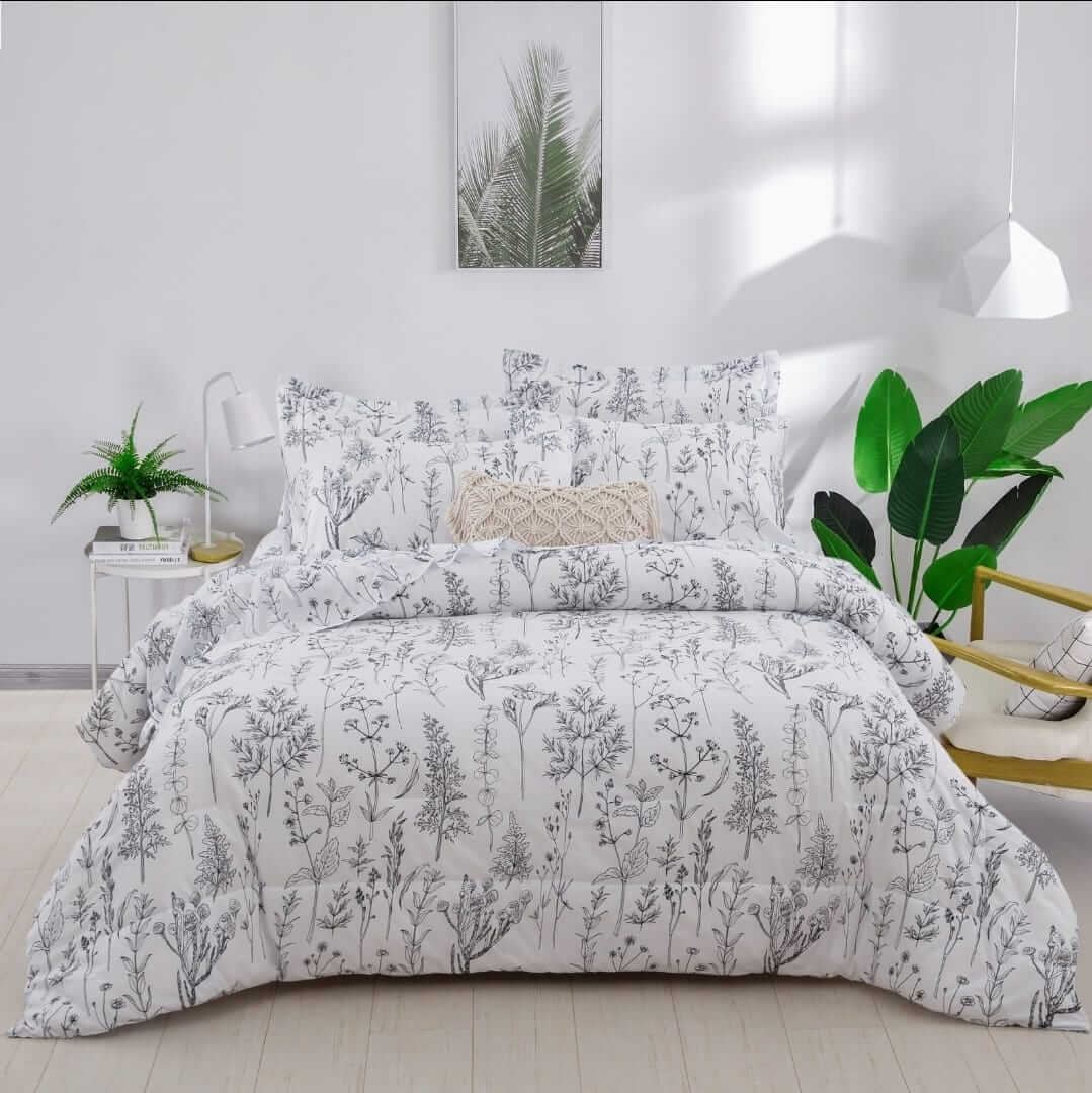 White Base Black Floral Comforter Set-Quilt Set (3Pcs)