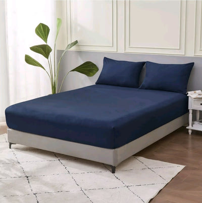100% Pure Cotton 500TC Fitted Sheet Set-40CM Deep Fitted Bedsheet (3pcs)-Navy Blue