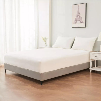 100% Pure Cotton 500TC Fitted Sheet Set-40CM Deep Fitted Bedsheet (3pcs)-White