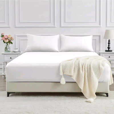Bamboo Blend Soft Fitted Bed Sheet Set (3Pcs)-White