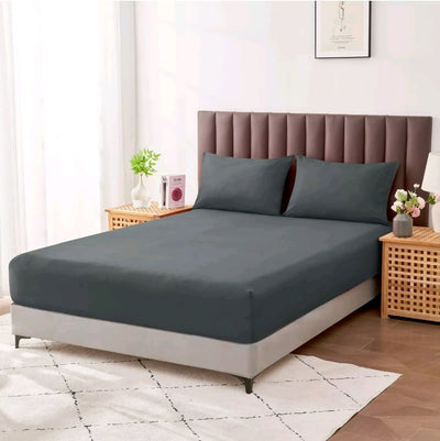 Cotton Blend Soft Fitted Bed Sheet Set (3Pcs)-Charcoal