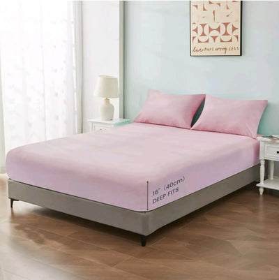 Cotton Blend Soft Fitted Bed Sheet Set (3Pcs)-Light Pink