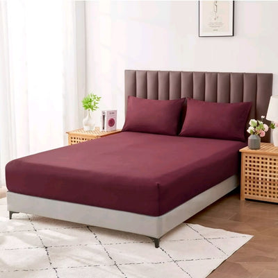 Cotton Blend Soft Fitted Bed Sheet Set (3Pcs)-Maroon