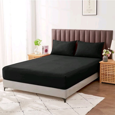 Cotton Blend Soft Fitted Bed Sheet Set (3Pcs)-Black