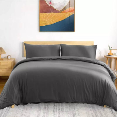 100% Pure Cotton Quilt Cover-Ultra Soft Duvet Cover Set 2xPillowcases (Dark Grey)