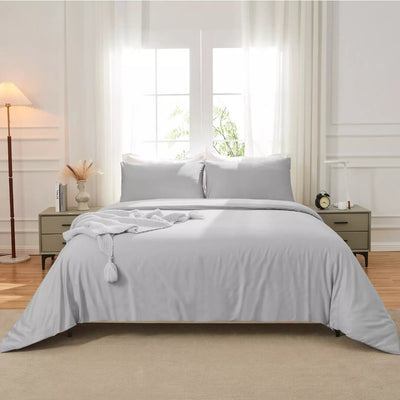 100% Pure Cotton Quilt Cover-Ultra Soft Duvet Cover Set 2xPillowcases (Grey)