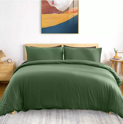 100% Pure Cotton Quilt Cover-Ultra Soft Duvet Cover Set 2xPillowcases (Olive Green)