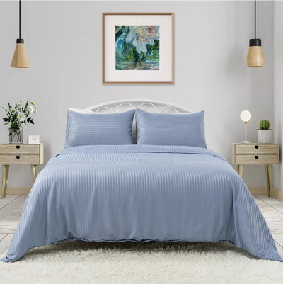 Microfiber Striped Quilt Cover-Ultra Soft Duvet Cover Set 2xPillowcases (Light Blue)