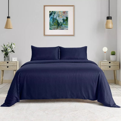 Microfiber Striped Quilt Cover-Ultra Soft Duvet Cover Set 2xPillowcases (Navy)