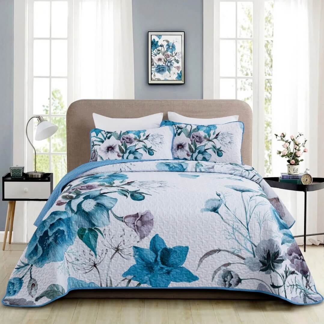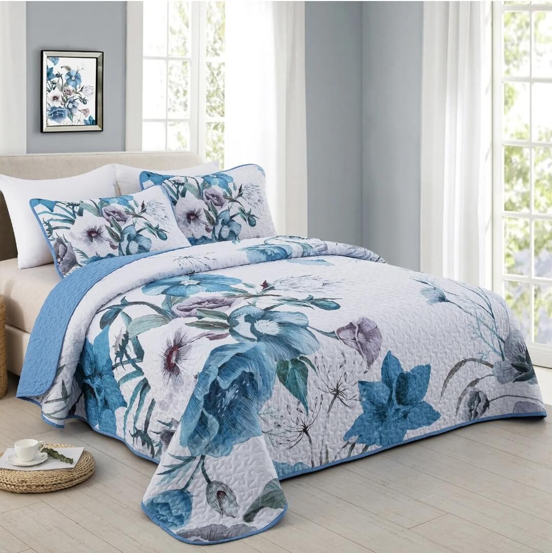 Our King and Queen size Bedspreads are made from using microfiber with polyester filling. These quilts are of hotel standard and gives luxury and superb feel & their finish make the Coverlets a favourite for those seeking a five-star indulgence. For years in the making, our Bedding sets are durable and luxurious while being incredibly soft and crisp.