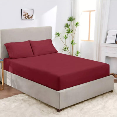 500TC Microfiber Soft Fitted Bed Sheet Set (3Pcs)-Burgundy