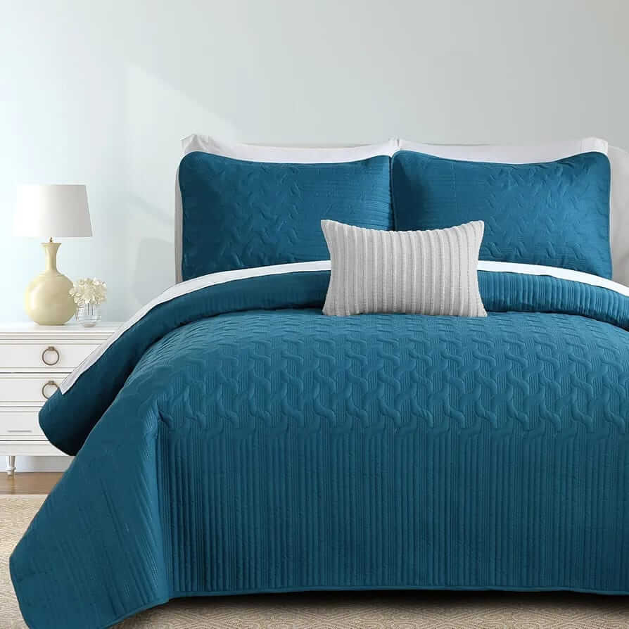 Our King and Queen size Bedspreads are made from using microfiber with polyester filling. These quilts are of hotel standard and gives luxury and superb feel & their finish make the Coverlets a favourite for those seeking a five-star indulgence. For years in the making, our Bedding sets are durable and luxurious while being incredibly soft and crisp.