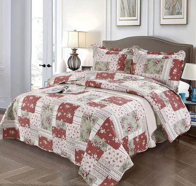 New Patchwork Floral Quilted Bedspread Coverlet Sets (3Pcs)