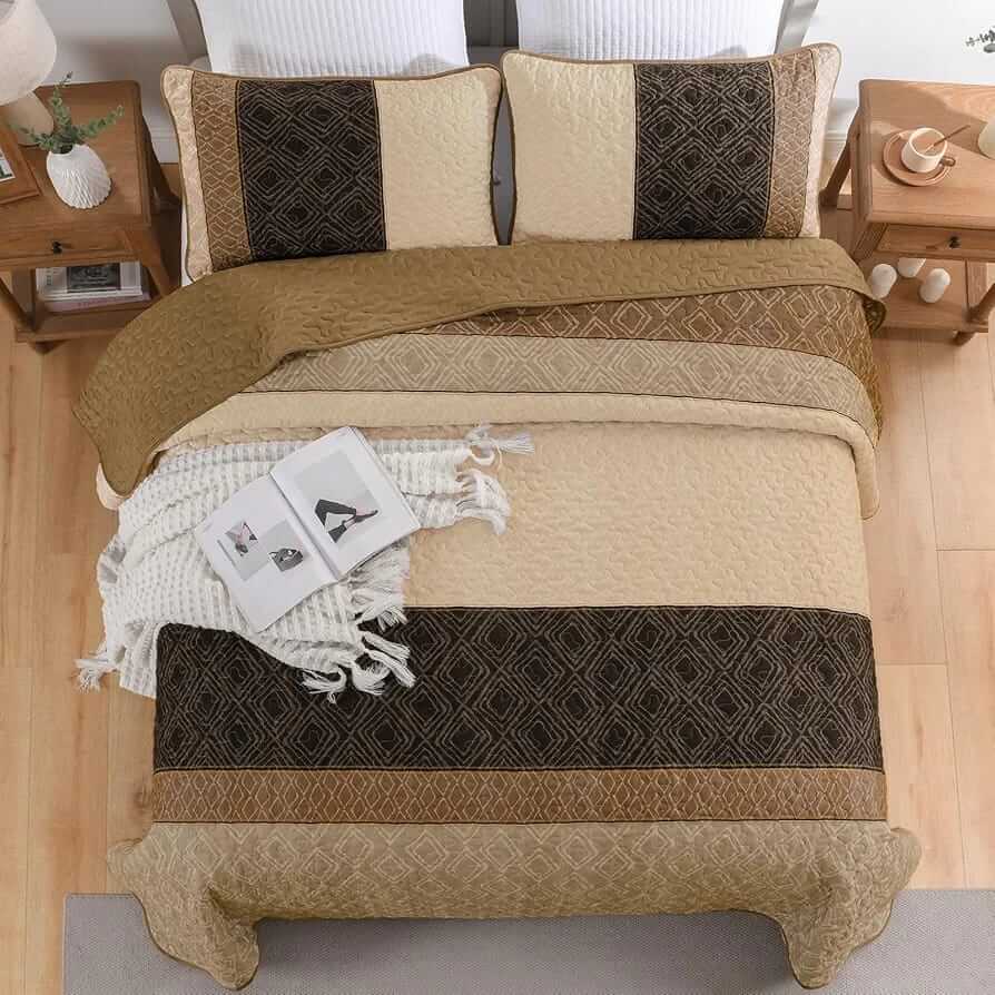 Our King and Queen size Bedspreads are made from using microfiber with polyester filling. These quilts are of hotel standard and gives luxury and superb feel & their finish make the Coverlets a favourite for those seeking a five-star indulgence. For years in the making, our Bedding sets are durable and luxurious while being incredibly soft and crisp.
