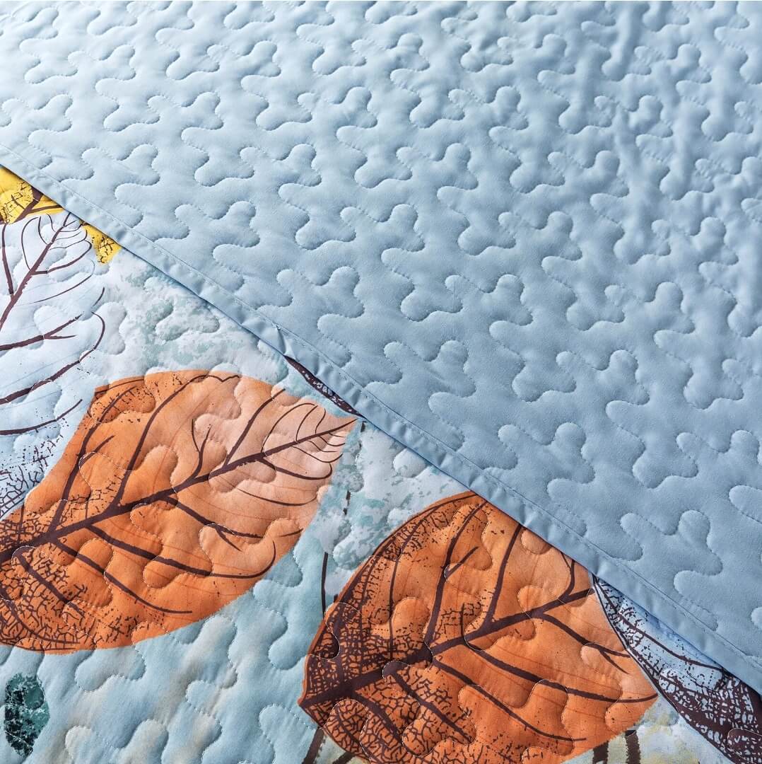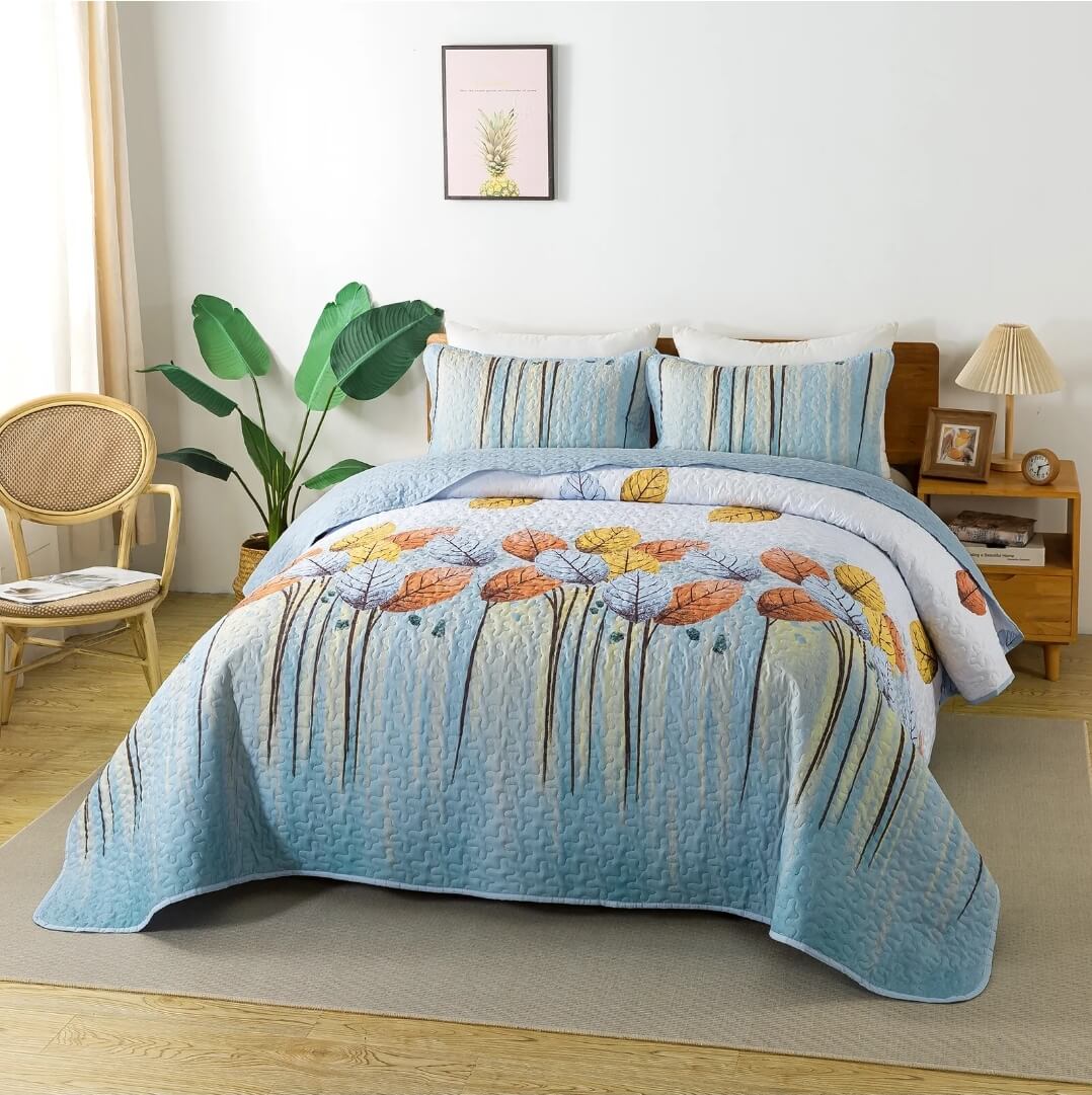 Sky Blue Floral Coverlet Set-Quilted Bedspread Sets (3Pcs)